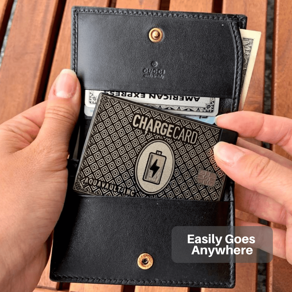 Up to 6 cash back ChargeCard by AquaVault is a credit card size phone smart device charger that fits in your wallet. Ultra-Thin Credit Card Sized Portable Charger Battery Bank. Bundle Save Deals Below ChargeCard Ultra-Thin Credit Card Size Phone.